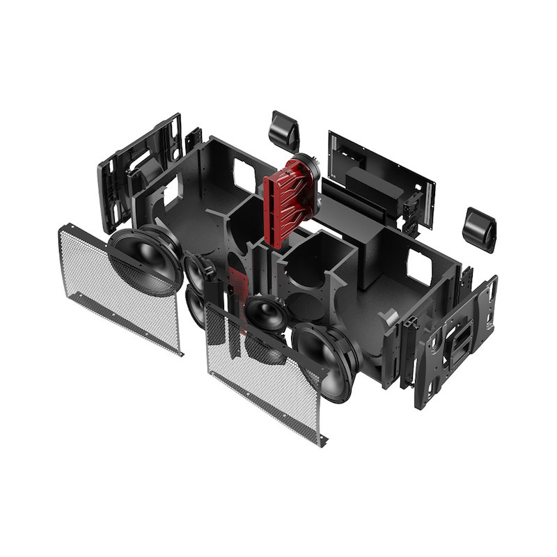 HF: Customized Neodymium driver, 2×3” voice coil,1.4” exit