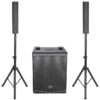 Model No. ATLANTIS-PA6 ATLANTIS-PA8 Type An Unbeatable Active Multi-position PA System All-in-One Battery Transducer LF 1 * 6.5? subwoofer, 1? voice coil 1 * 8? subwoofer, 1? voice coil Transducer HF 3 * 2.75?, neodymium magnet, 1? voice coil Frequency Response (-6dB) 65 Hz – 18 kHz (-6dB) 50 Hz – 19 kHz SPL (1W/1m) (1m, free space) 93 dB (1m, free space) 95 dB Max. SPL (1m, free space) 110 dB (1m, free space) 120 dB Protection Circuits Short Circuit overdrive protection Impedance 4Ohms Amplification 2 x Class D Power Output (RMS) (RMS) 100W (RMS) 120W Power Output (Peak) (RMS) 200W (RMS) 240W Number of Mixer Channels 3 3 Number of Mic Preamps 2 2 EQ 2-Band Channel EQ Effects Reverb Inputs 2 * XLR / 6 .3mm Combo , / 1 * RCA Line in Outputs 1 * XLR line out Bluetooth Yes Enclosure Material Polypropylene Plastic Mounting Options 35mm pole mount, Tilt-back, Floor Monitor Power Supply 110~240V 50/60HZ Battery Rechargeable Lithium—ion battery 5200mAH 7 Hours 100% power / 12 hours 50% power Dimensions (WxHxD) 220 X 320 X 205mm 327 x 505 x 415mm Gross Weight 7,2Kg 8,6Kg