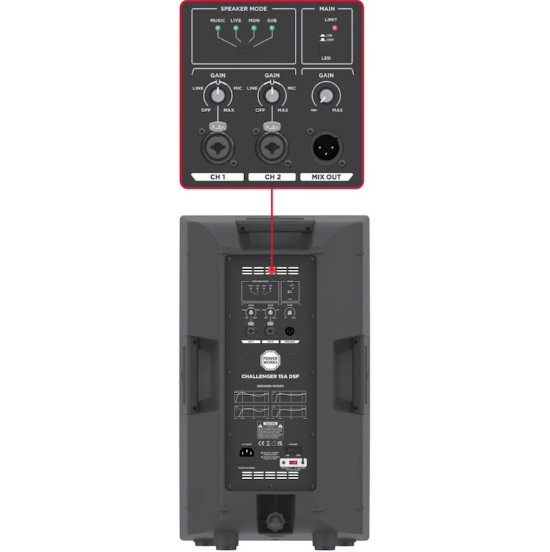 - DSP with 4 presets (MUSIC, LIVE, MON, SUB)
