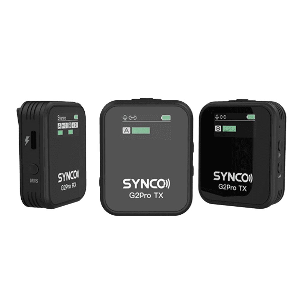 The SYNCO G2 Pro is a long range wireless microphone at 656ft/200m (LOS). It owns the same compact form factor and features as the original G2 and comes with innovative features including one-click noise reduction, gain control on both TX and RX, safety channel mode, universal digital Type-C output, digital audio monitoring, and much more. It is universally compatible with cameras, smartphones, computers, loudspeakers, etc. With the supplied charging box, the G2 Pro offers 24 hours of recording time in total for video creation, interviewing, live streaming, etc.
